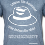 Es gibt auch Kleidung mit meiner mittlerweile legendären Frage an ARD-Moderatorin Anja Reschke: „Lügen Sie bewußt oder haben Sie nicht recherchiert?“ Dazu passend ein Bild meines Hutes.