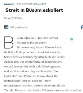 KREIS DITHMARSCHEN : Ein Toter nach Messerstecherei in Büsum